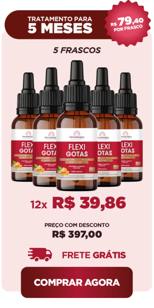 Elaborado sob os preceitos da Homeoterápica Farmácia de Manipulação, FlexiGotas tem ação sinérgica, a qual implica em cada um dos seus componentes potencializar a ação dos outros, agindo diretamente na causa das dores articulares, estimulando a regeneração do tecido cartilaginoso, lubrificando e protegendo as articulações, reduzindo a inflamação e a dor.